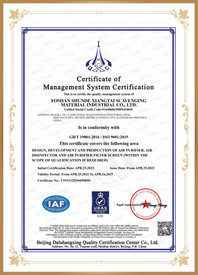 Zehn Gründe für die Wahl der Xiangtai-Reinigung: 1.Fabrik im Eigentum des Unternehmens,10 Jahre Erfahrung in der Herstellung von Luftreinigungs-/Filtrationssystemen.OEM-Erfahrung mit Marken der ersten Linie 2Perfekte Lieferkette, starke Produktionskapazität, kann schnell nach Plan geliefert werden; 3Das Designteam von mehr als zehn Personen entwirft und führt den Trend unabhängig voneinander. 4. kann schnell neue Produkte produzieren, schnell mit Proben zu prüfen; Spezielle Modelle können für spezielle Zwecke zur Verfügung gestellt werden, und Waren nicht kollidieren; 5- unabhängiges Design, kein Verstoßrisiko; 6Schöne Bilder und Videos aller Produkte sind für die Vermarktung verfügbar. 7. Professionelles Forschungs- und Entwicklungsteam und Produktionsteam, die OEM- und ODM-Anpassung unterstützen. 8Strenge Qualitätskontrolle, alle Produkte werden nach strenger Inspektion geliefert, garantierte Qualität, einjährige Garantie. 9Xiangtai Scavenging verfügt über ein strenges Qualitätssicherungssystem und hat ISO9001, ISO13485, BSCI, CB, CE, RoHS, ETL, FCC und andere Qualitätssicherungssysteme zertifiziert.Die Produkte werden auf den Hauptmärkten angeboten.. 10- Mehr als 30 technische Patente, hervorragende Qualität ist die Garantie für Ihr Vertrauen. |